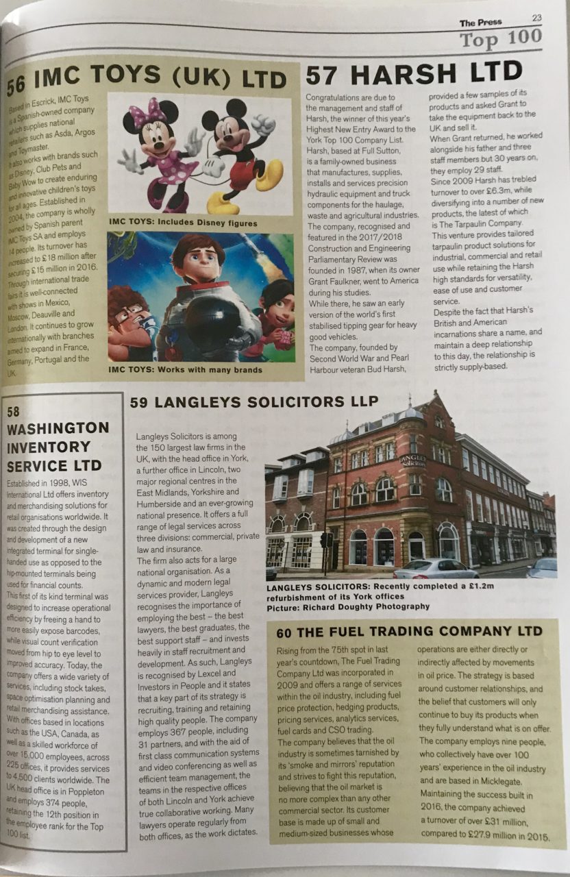 最高的新进入奖项颁发给苛刻的家族企业,制造,供应,安装和服务精密液压设备和卡车组件。亚当哈格里夫州董事总经理说:“为我们作为一家公司,我们被转向商业的潜力,争取卓越和持续的进化。我们欠了这一表现可能的同事,我们期待着未来。这是约克前100名业务的这样的人才之一。“