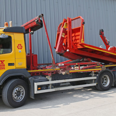 领先的回收托尔尔可以玻璃覆盖Rainham的回收刚刚投入使用作为钩载器或作为Skiploader的车辆,无论是26T Solo还是44T拔臂操作。如何做到这一点很容易 - 用苛刻的独特拆卸的Skiploader车身。