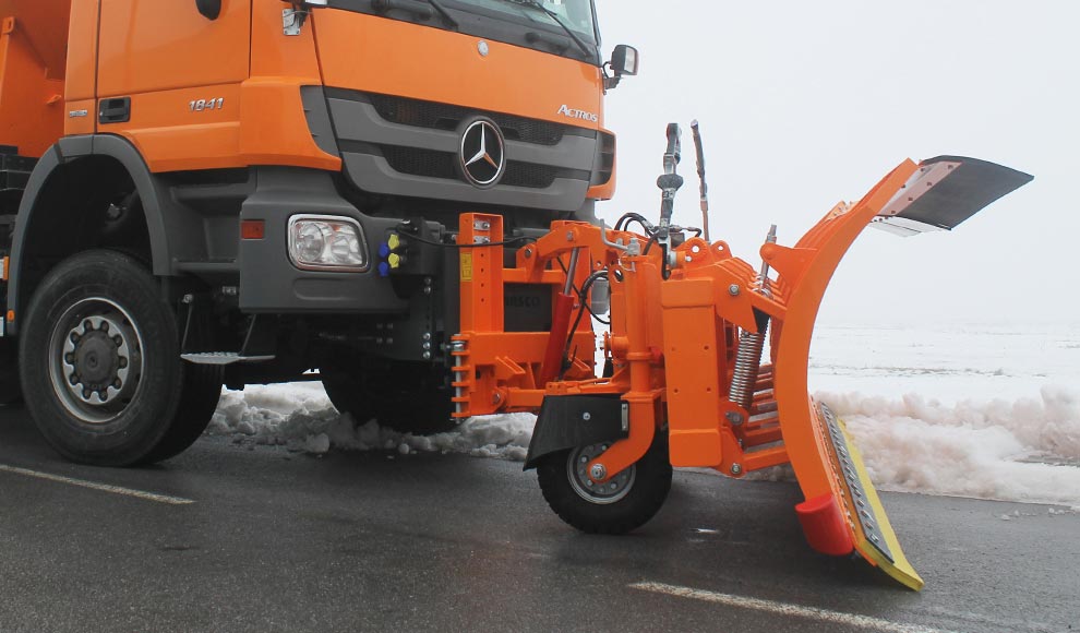 MOSOR犁是一种高弹性犁,应用范围广泛,从开阔的道路到狭窄的城市街道。机翼和犁梁之间的弹性聚氨酯连接系统能够很好地适应交通表面,从而实现良好的除雪。