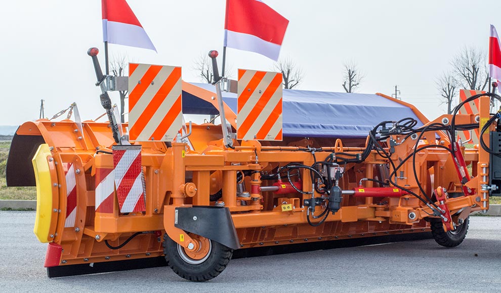 KALNIK XL是一种坚固的犁,旨在维护宽阔和开放的道路。它是专为清除深雪而设计的,可根据不同耕作宽度的要求进行调整。它的可变尺寸,通过打开和关闭最左边的机翼实现,可以简单地改变犁的宽度从4米到5米,并用两种宽度犁地。这使得用户能够调整高速公路和通路的不同轮廓。